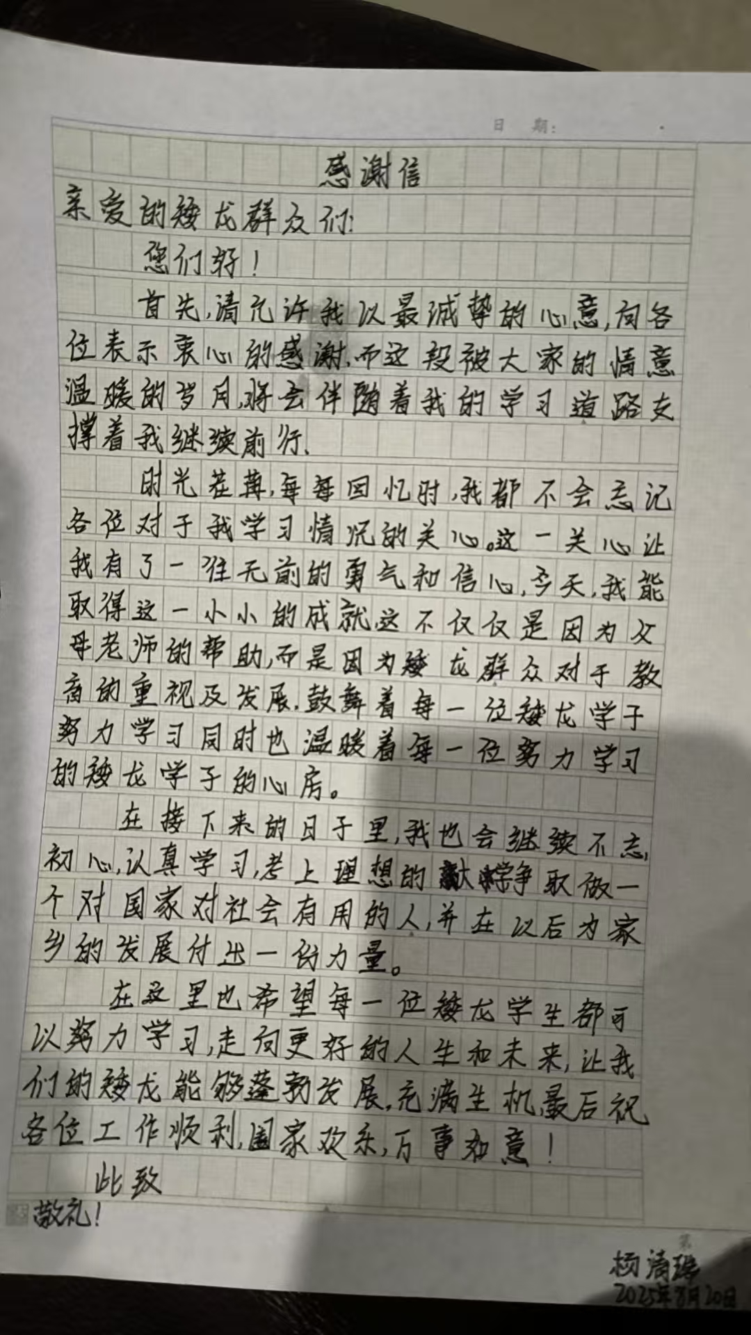 杨清瑞感谢信